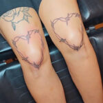 Tetování ostnatý drát ve tvaru srdce na kolena