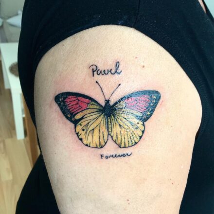 Tetování otisk prstu a zvířata, motýl na hrudník
