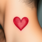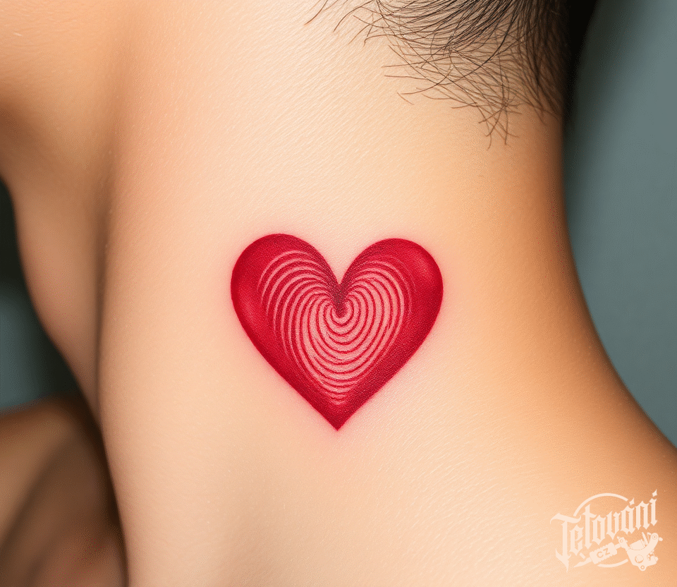 Tetování otisk prstu srdce na krku