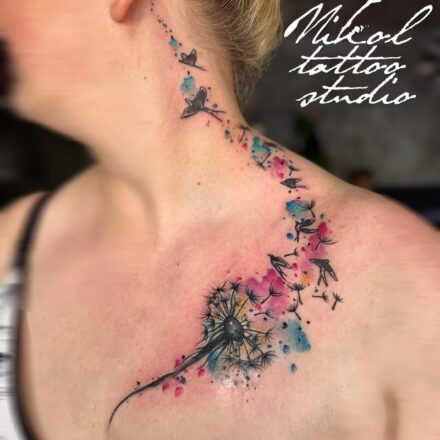 Tetování pampelišky, květina na předloktí