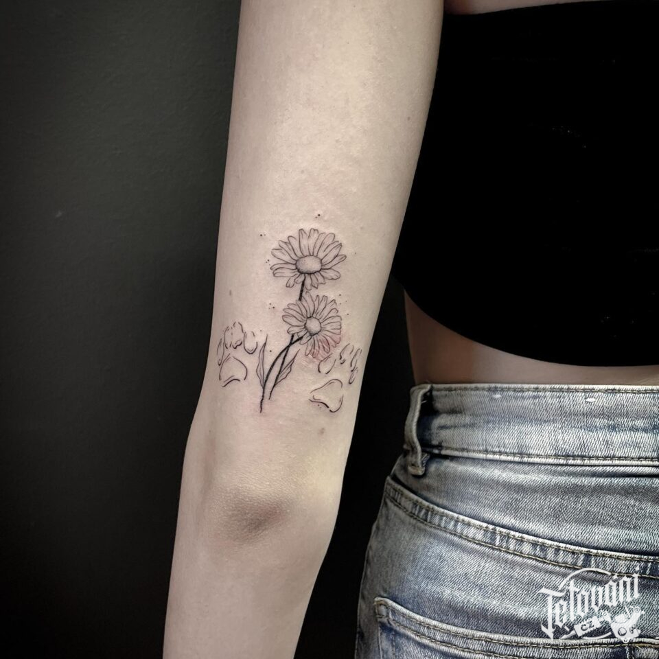 Tetování pampelišky, květiny na rameno