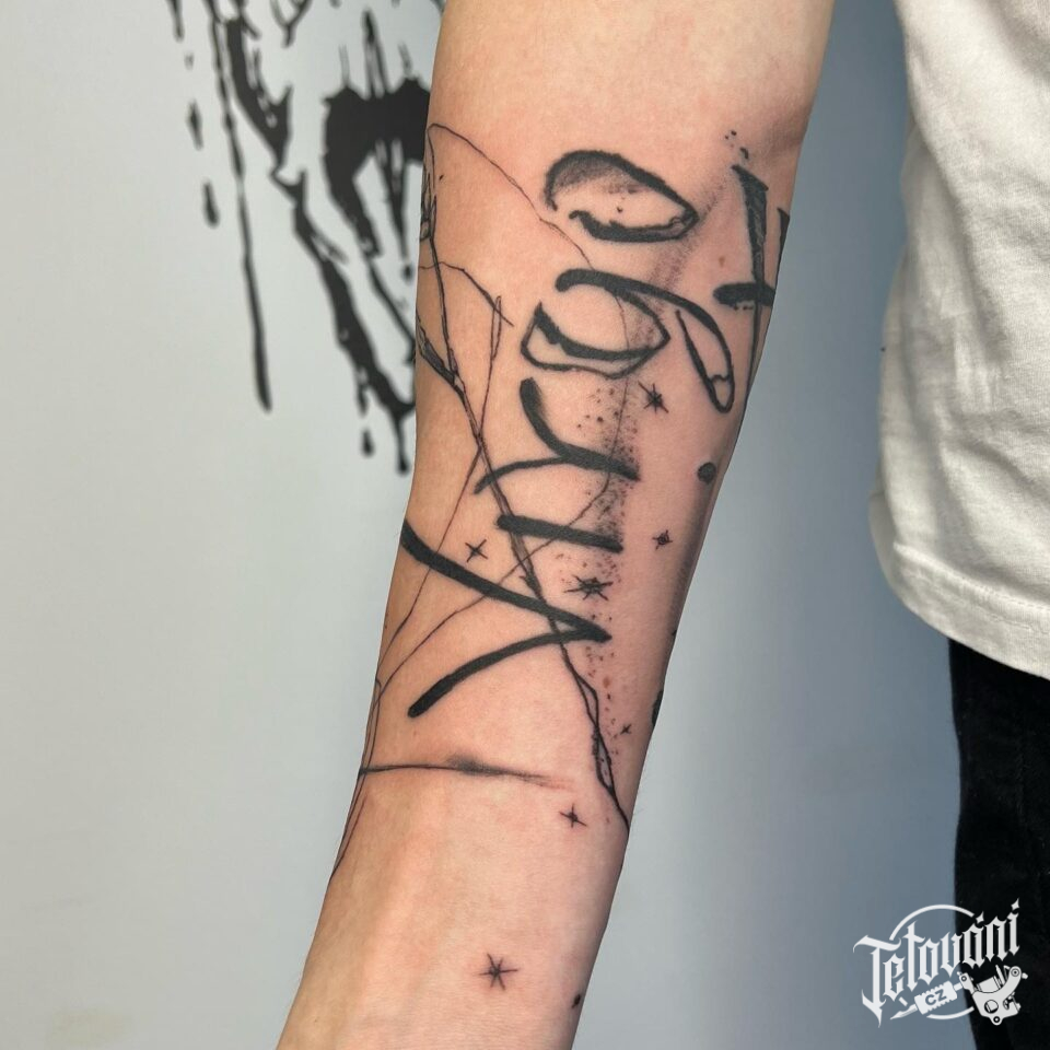 Tetování panna znamení zvěrokruhu, nápis na předloktí