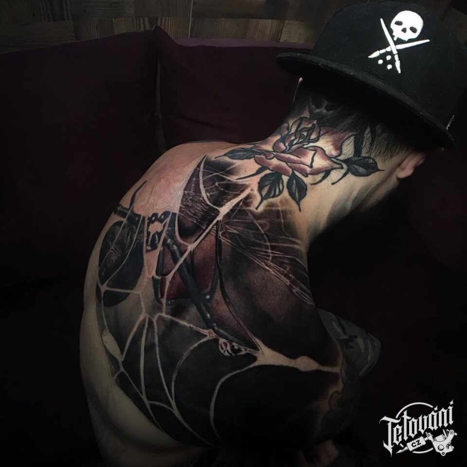 Tetování pavouk, pavučina na zádech
