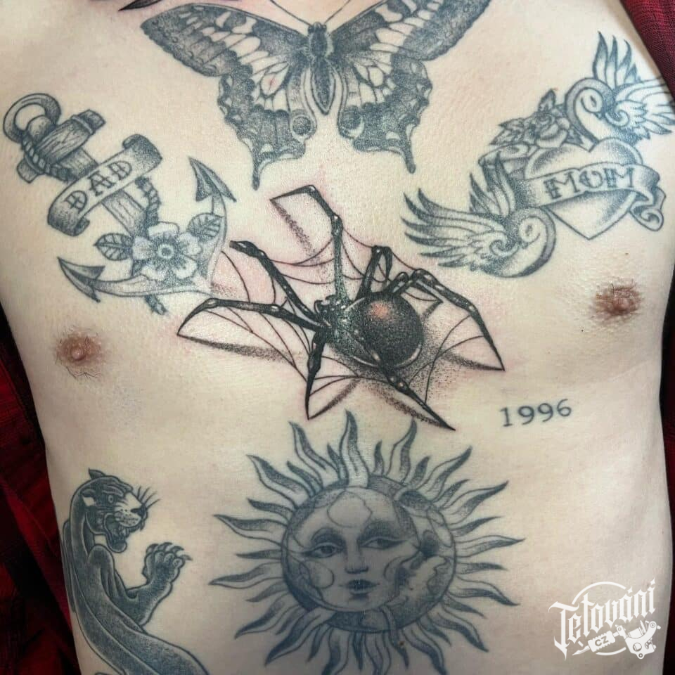 Tetování pavouk, zvíře na hrudník