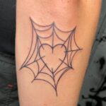 Tetování pavučina a srdce na předloktí
