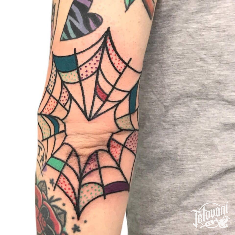 Tetování pavučina na loket