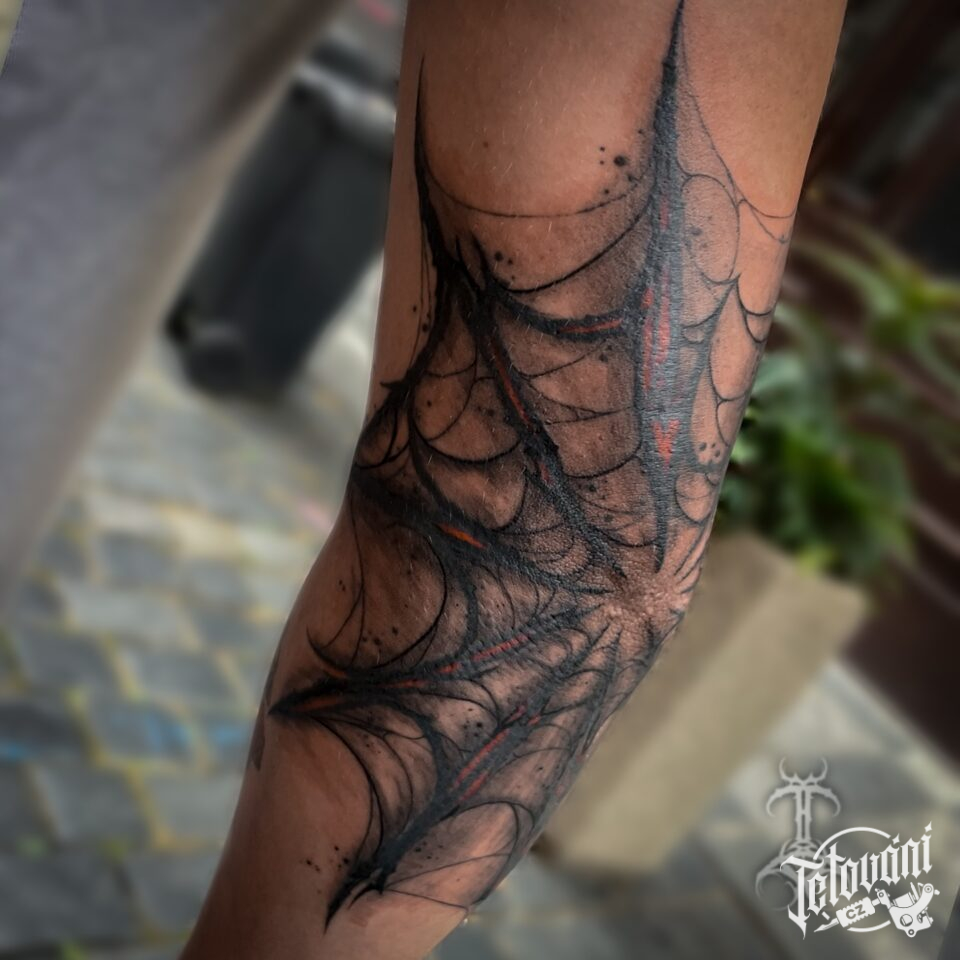 Tetování pavučina na lokti