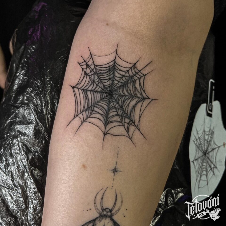 Tetování pavučina, symbol na předloktí