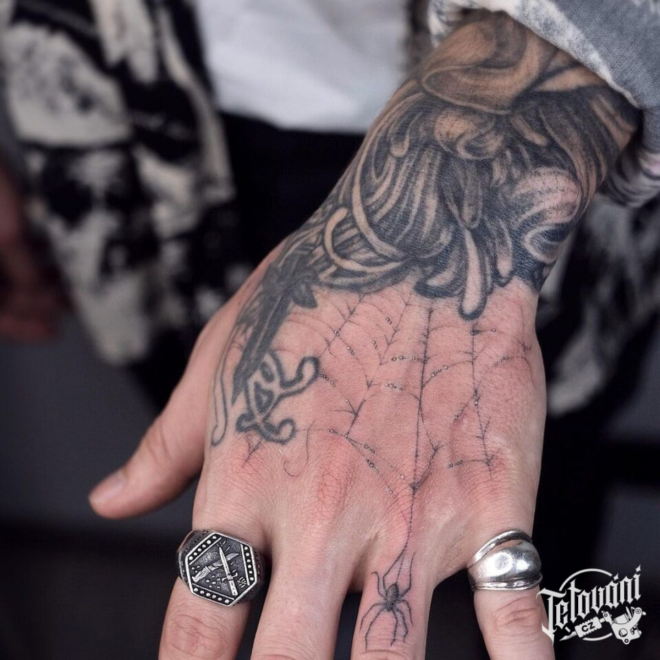 Tetování pavučina, zvíře pavouk na hřbet ruky