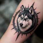 Tetování pes husky s komp...