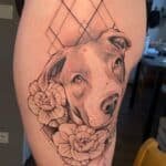 Tetování pes na boku stehna