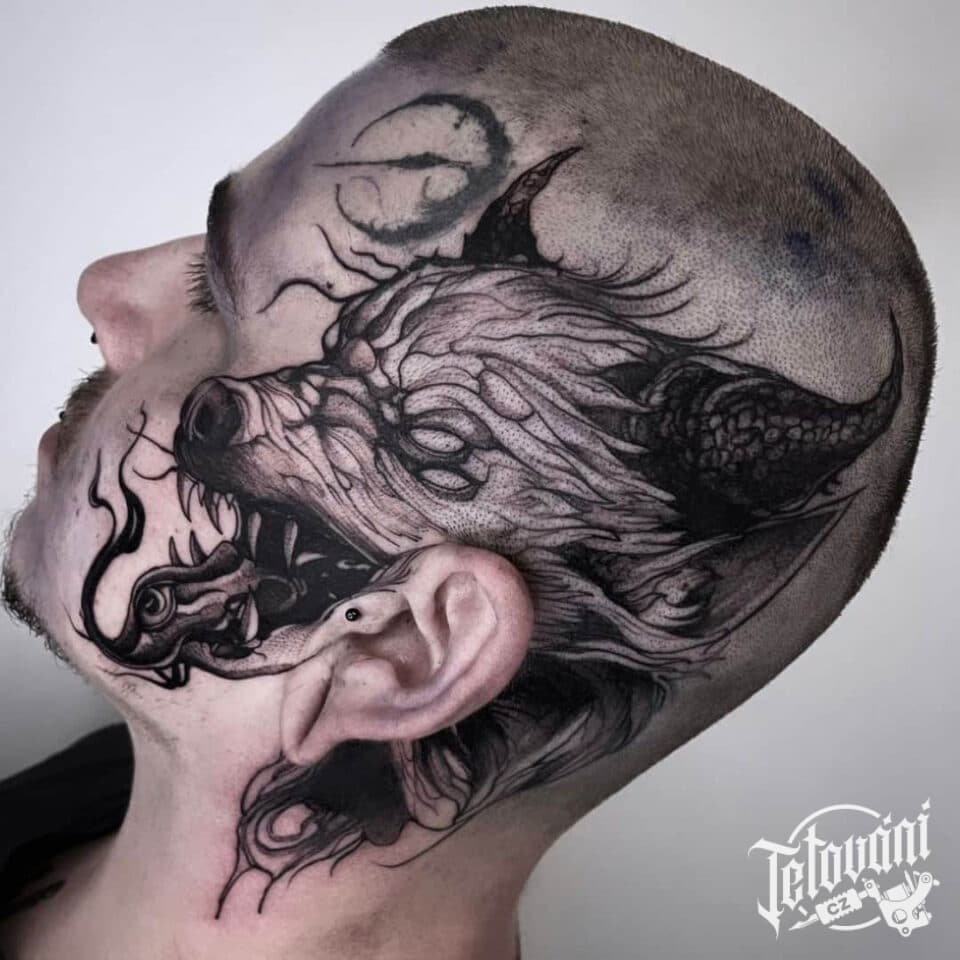 Tetování pes na hlavě