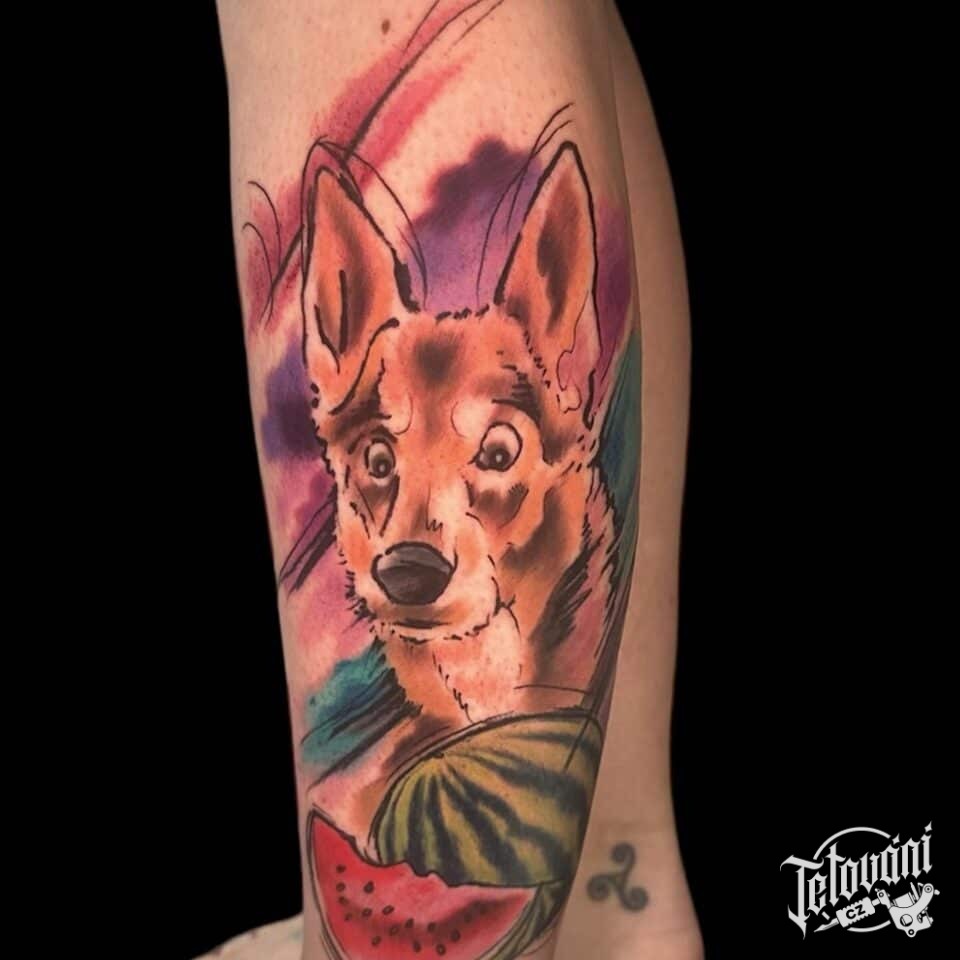 Tetování pes na lýtku