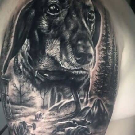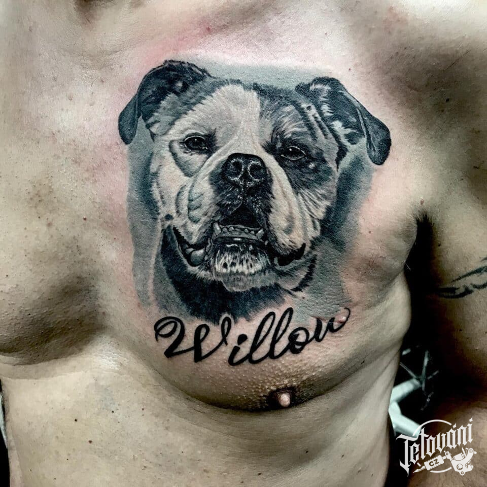 Tetování pes na prsu