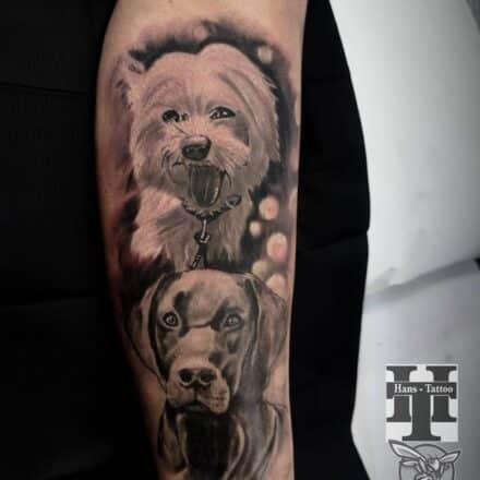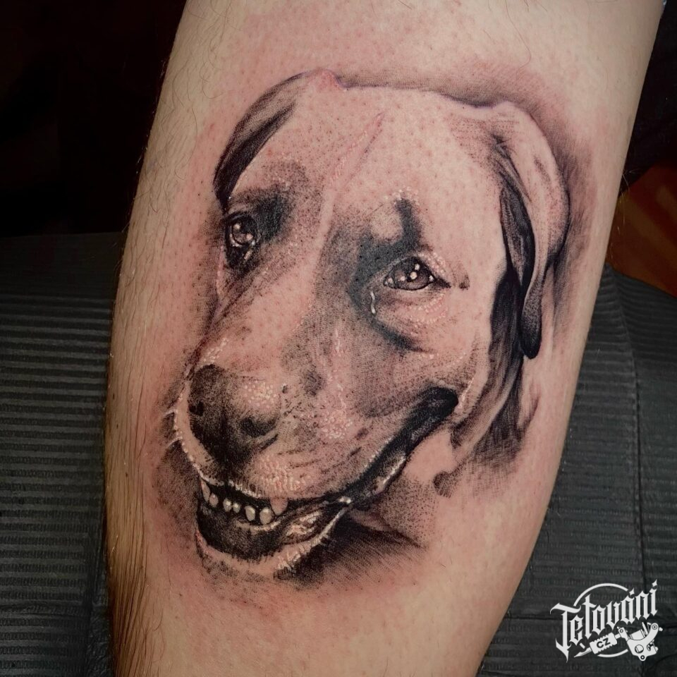 Tetování pes na stehně