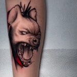 Tetování pes, symbol síly na lýtko