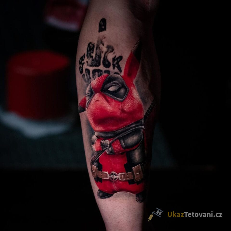 Tetování Pikachu a Dead Pool, Marvel, postavičky na lýtko
