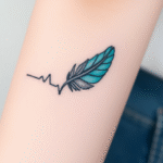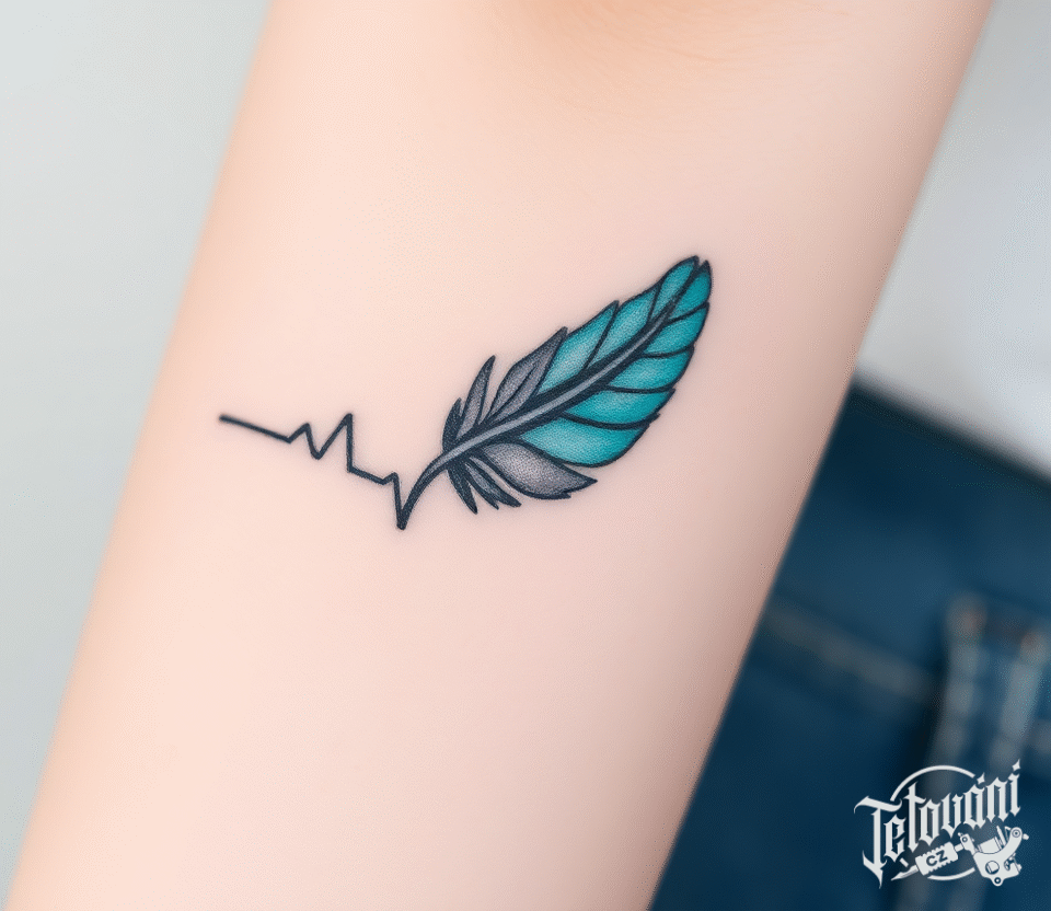 Tetování pírko a tep srdce na předloktí
