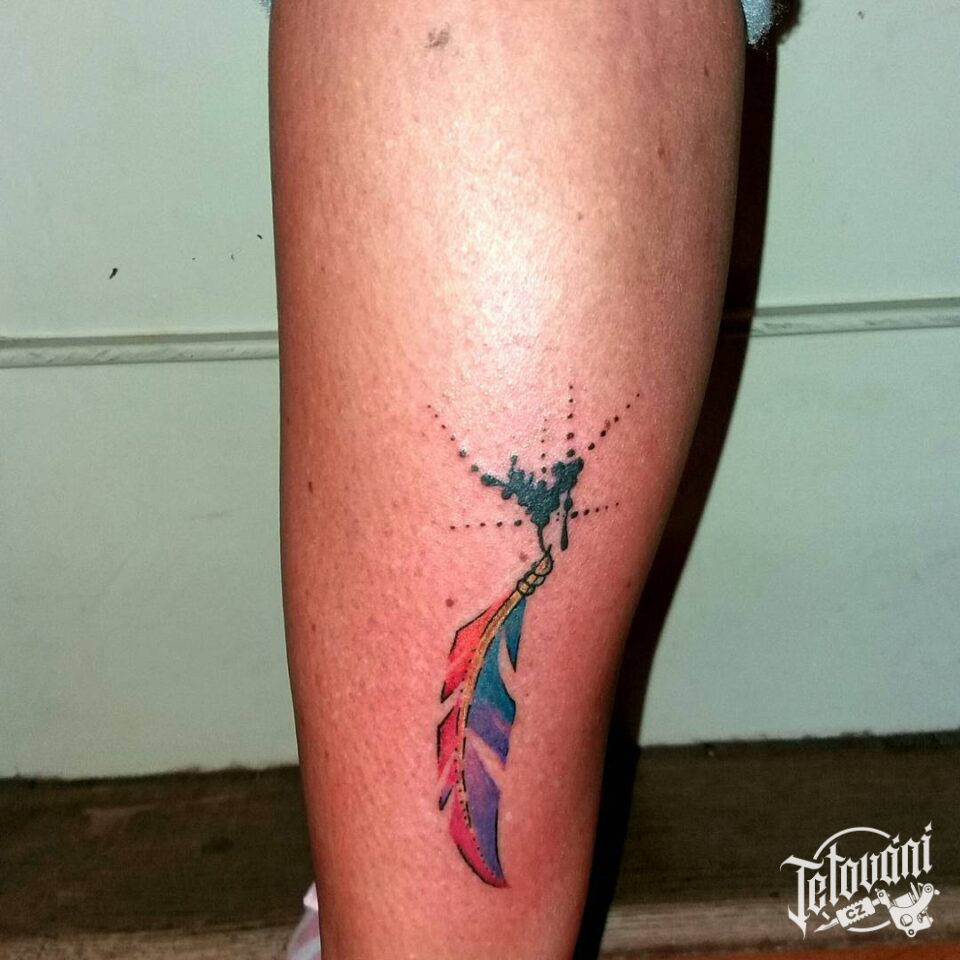 Tetování pírko na lýtko