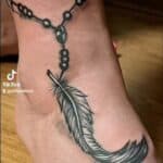 Tetování pírko s řetízkem na kotníku