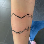 Tetování písmena, čáry kolem ruky na předloktí