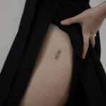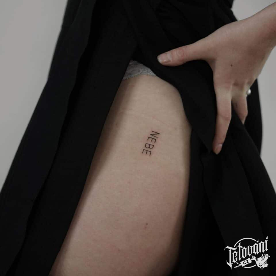 Tetování písmena, nápis na boku stehna