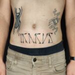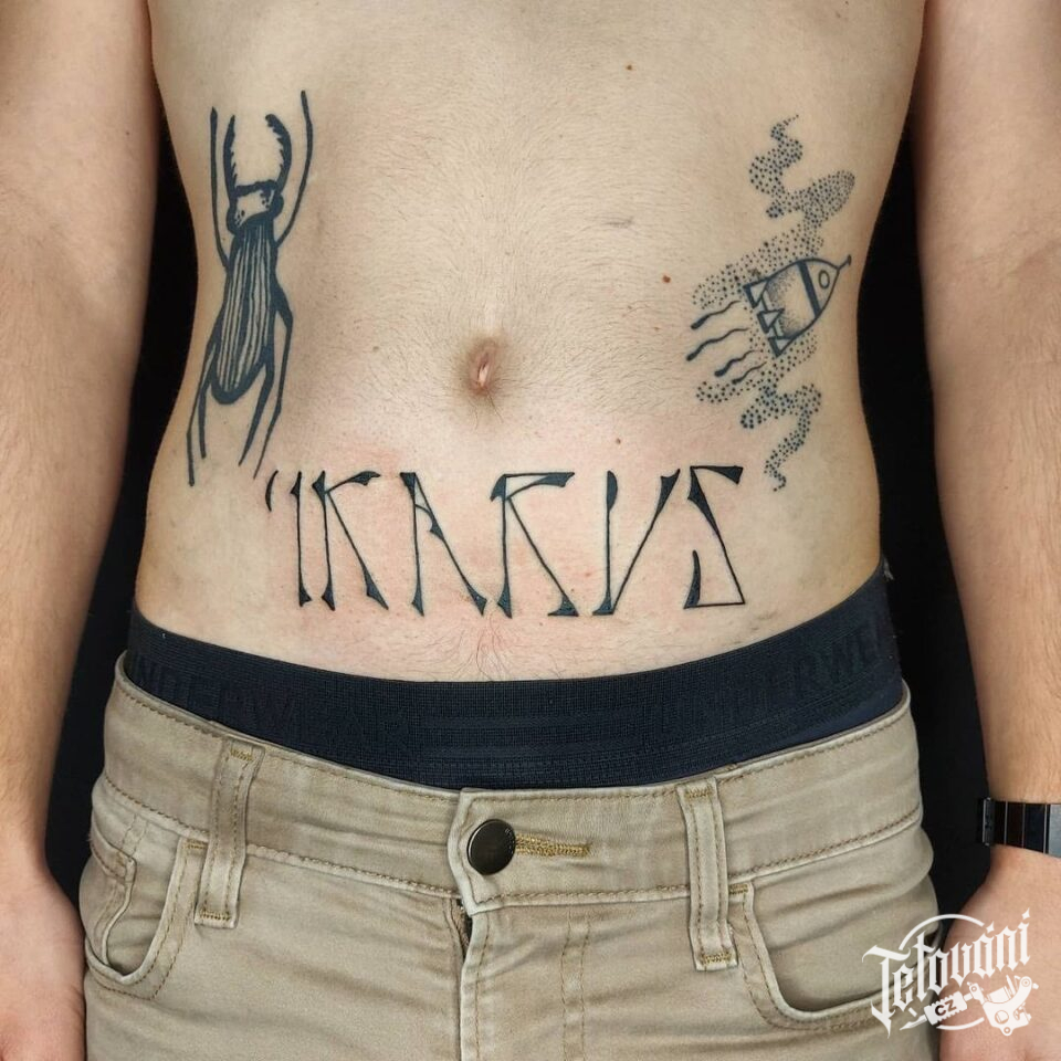 Tetování písmena, nápis na břichu