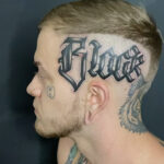 Tetování písmena, nápis na hlavě