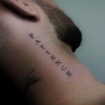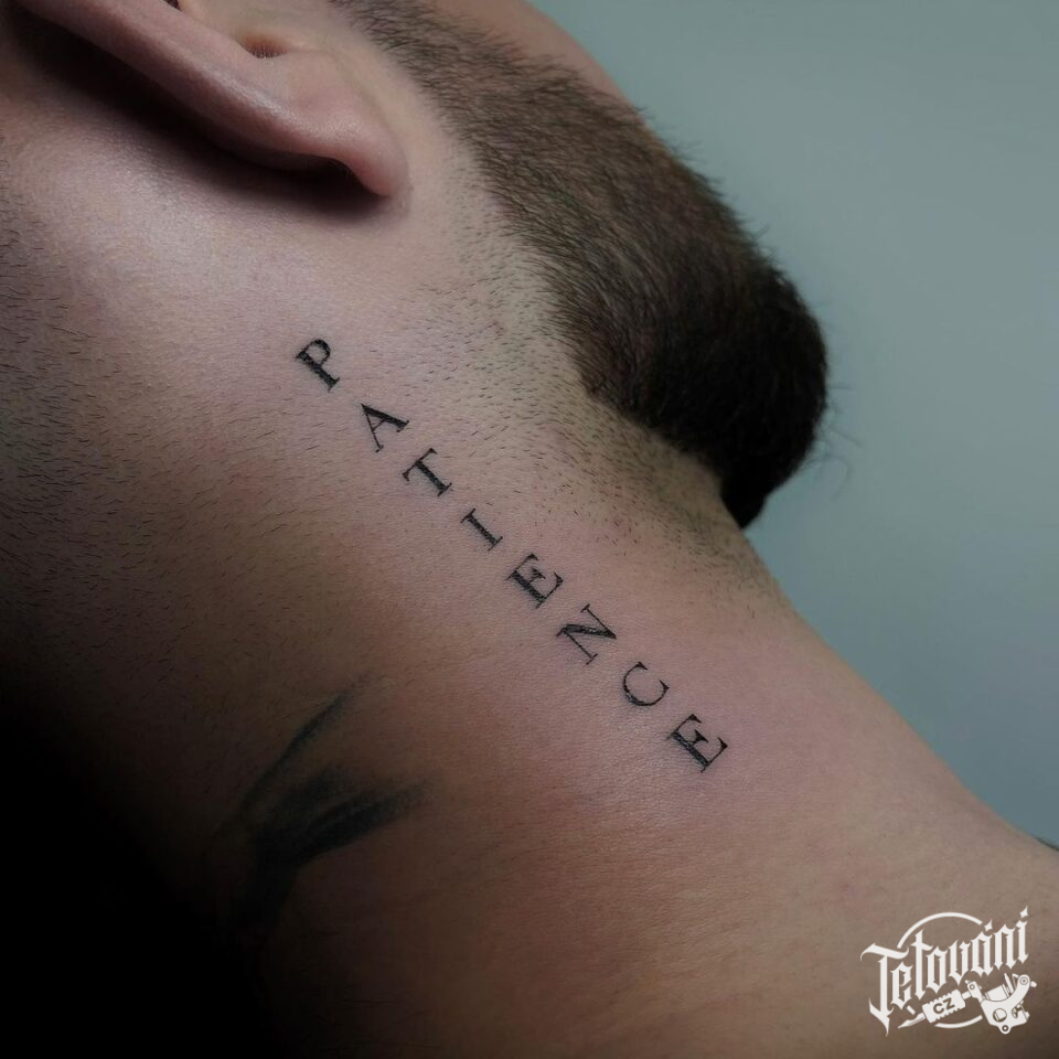 Tetování písmena, nápis na krku
