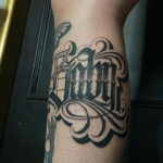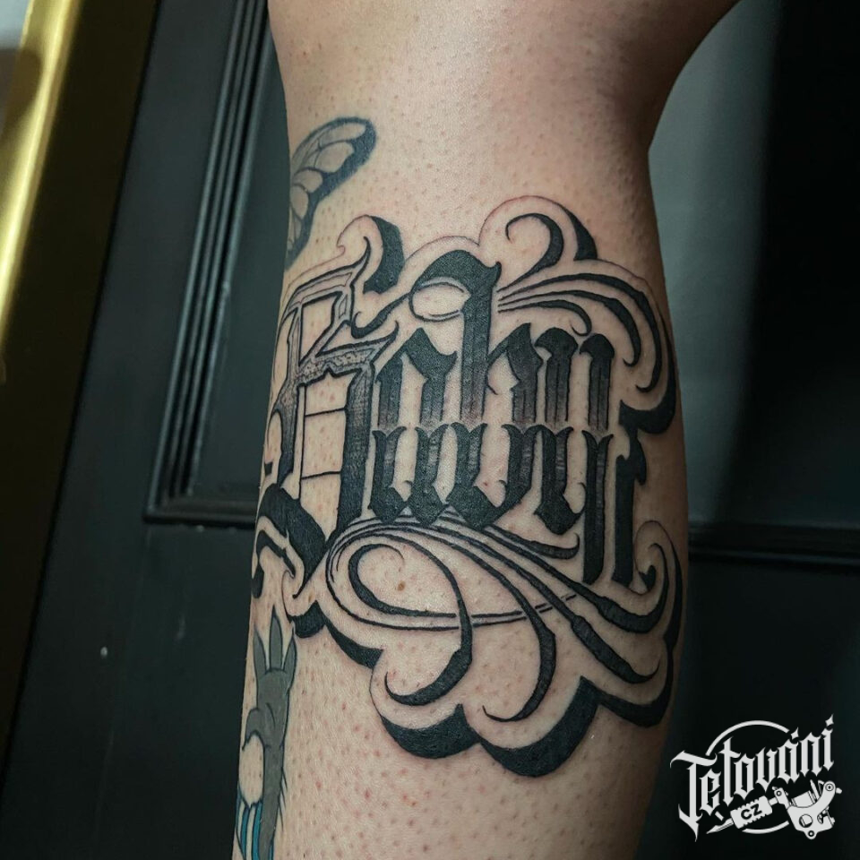 Tetování písmena, nápis na lýtku