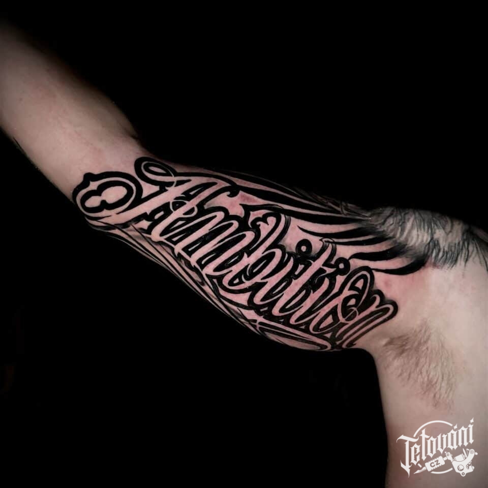 Tetování písmena, nápis na paži