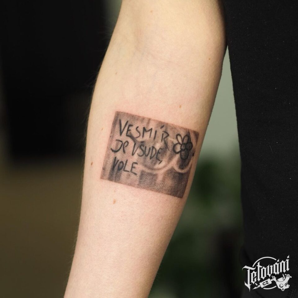 Tetování písmena, nápis na předloktí