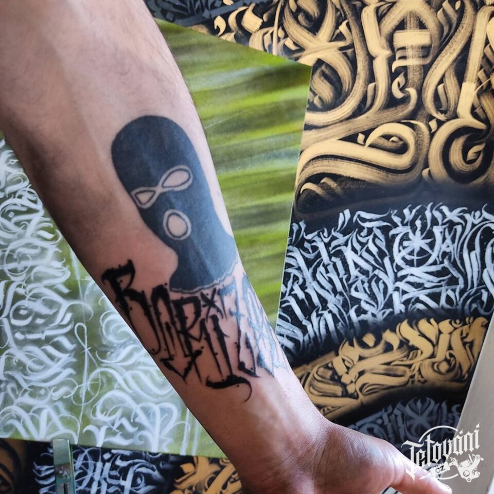 Tetování písmena, nápis na předloktí