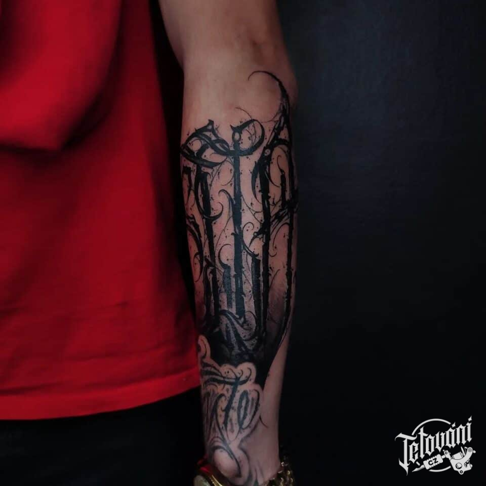 Tetování písmena, nápis na předloktí