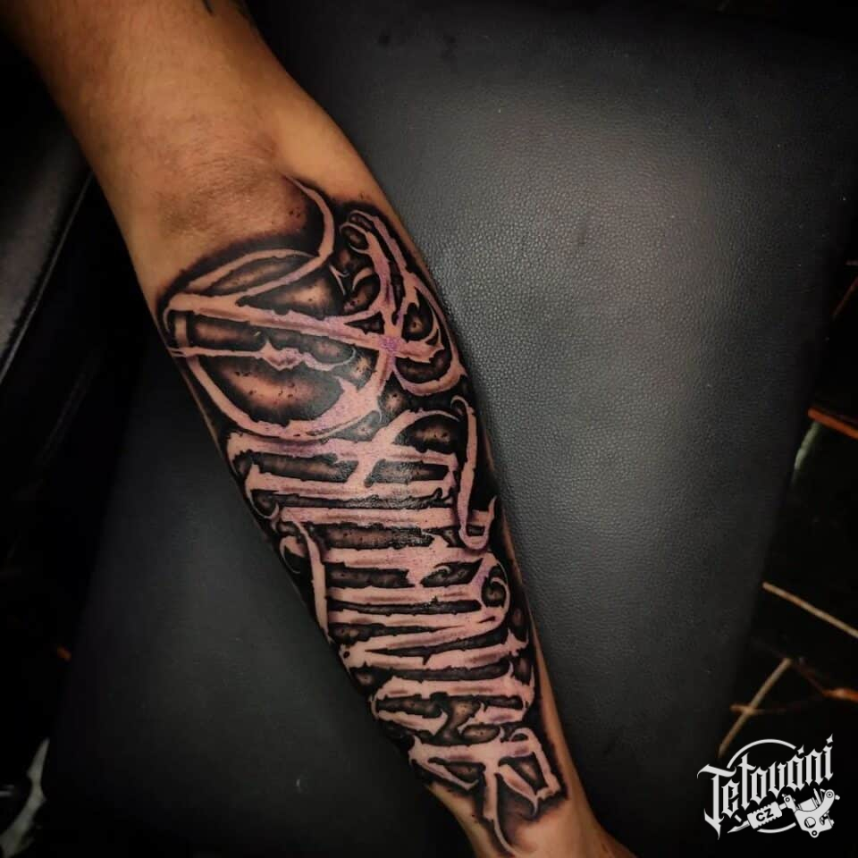 Tetování písmena, nápis na předloktí