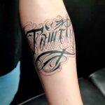 Tetování písmena, nápis na předloktí