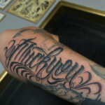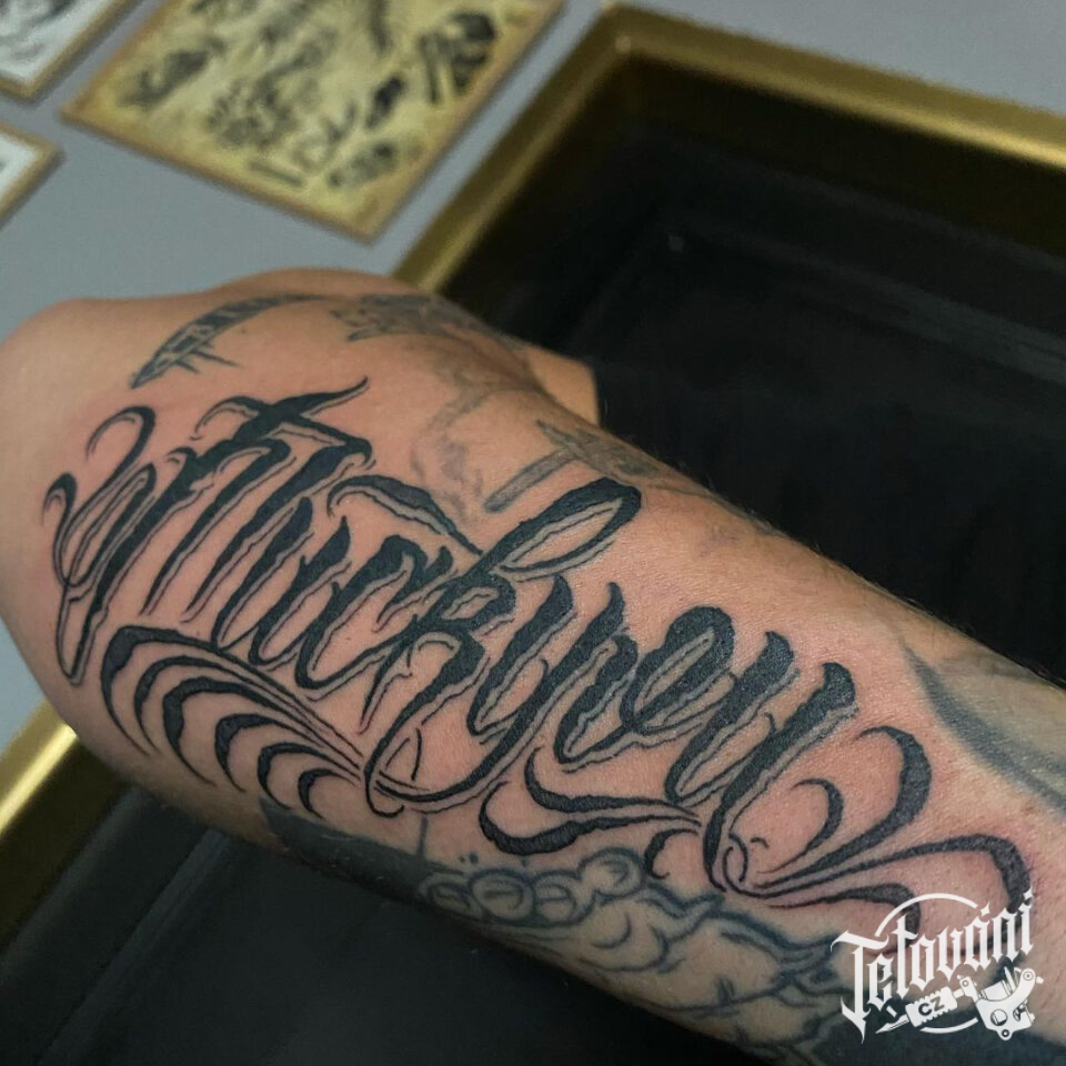 Tetování písmena, nápis na předloktí