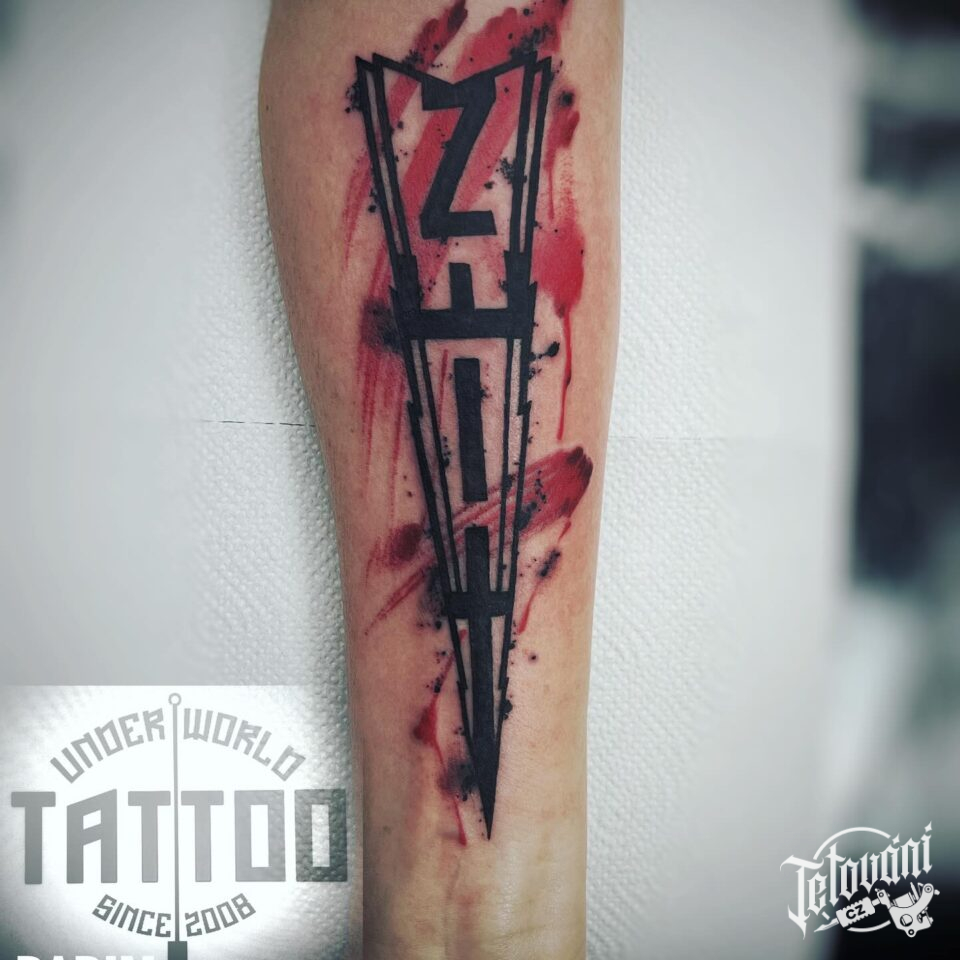 Tetování písmena, nápis na předloktí