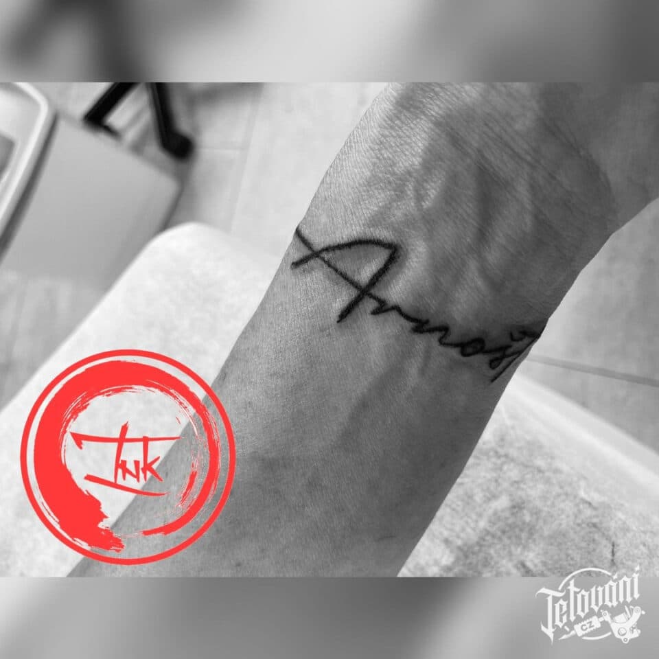 Tetování písmena, nápis na předloktí