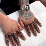 Tetování písmena, nápis na prstech
