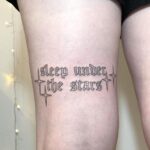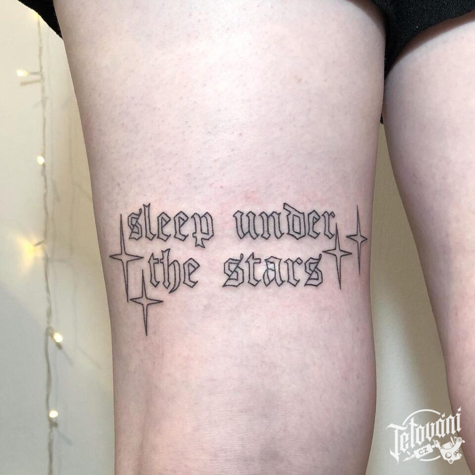 Tetování písmena, nápis na stehně
