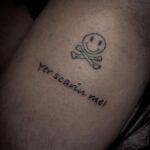 Tetování písmena, nápis na stehně
