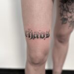 Tetování písmena, nápis na stehně