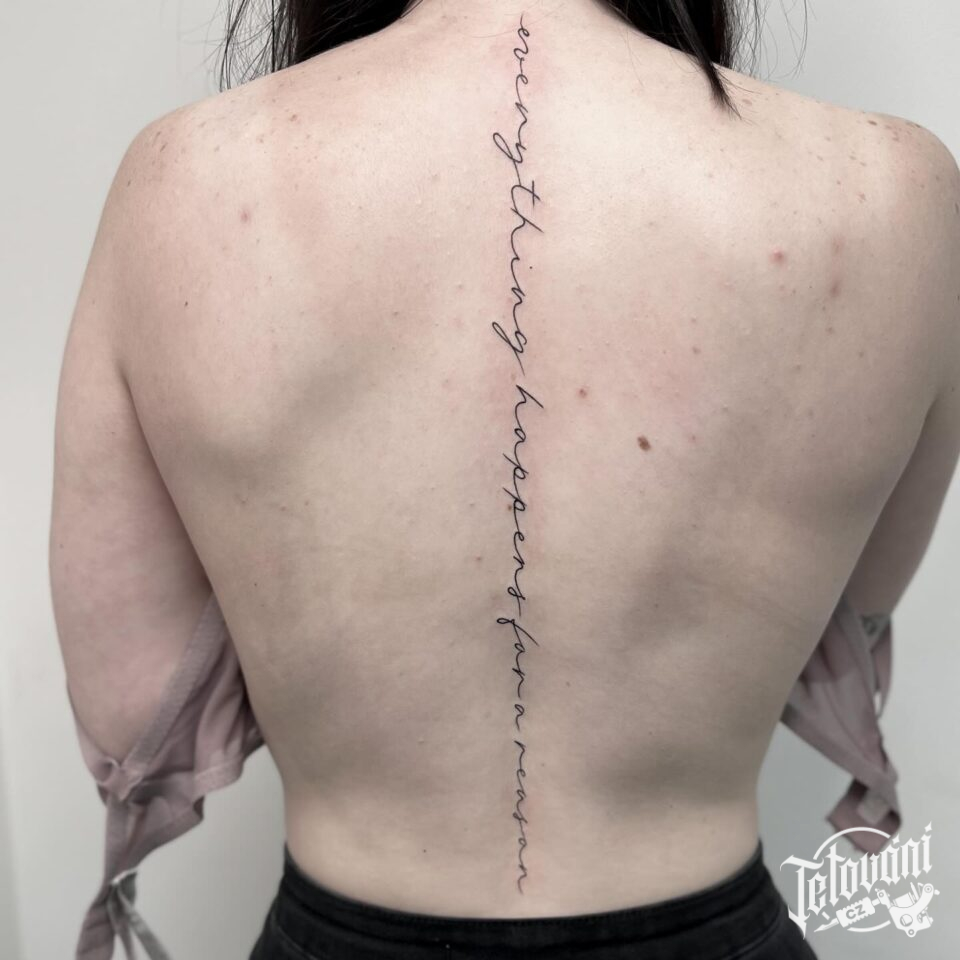 Tetování písmena, nápis na zádech