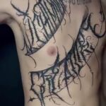 Tetování písmena, nápisy na břichu
