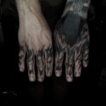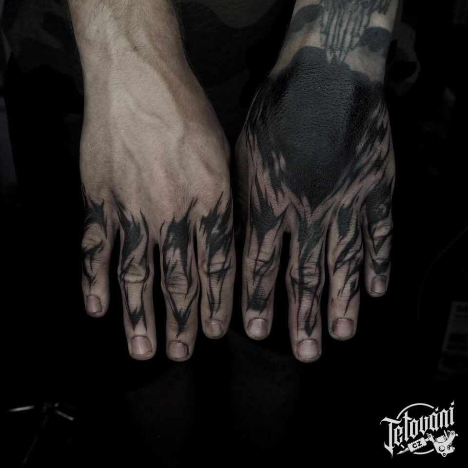 Tetování písmena, nápisy na prsty a hřbet ruky