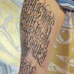 Tetování písmena, nápisy na stehně