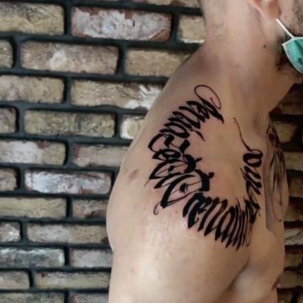 Tetování písmena, nápisy, znaky a symboly na stehno
