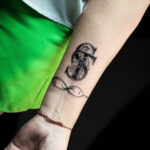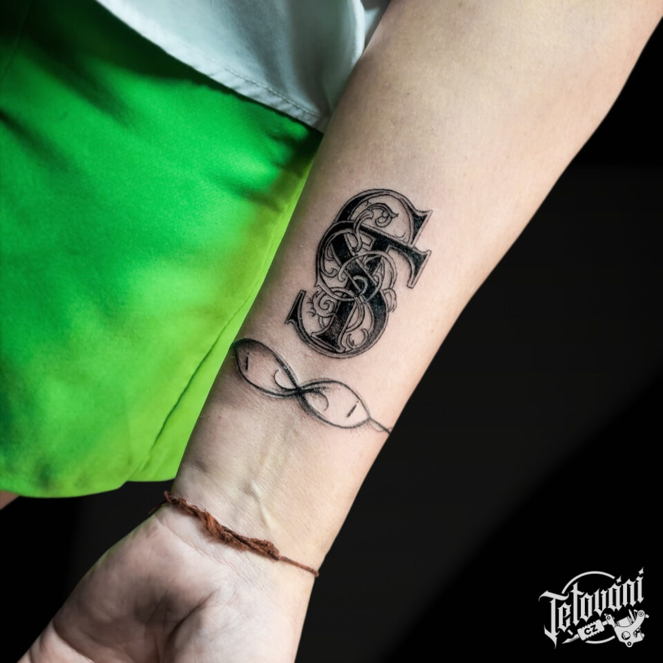 Tetování písmena S na předloktí
