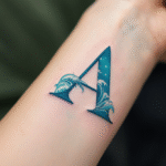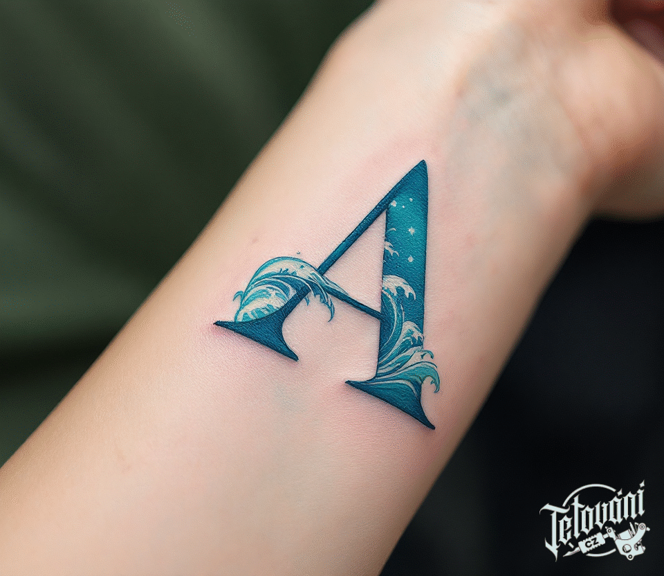 Tetování písmeno A, nápis na předloktí